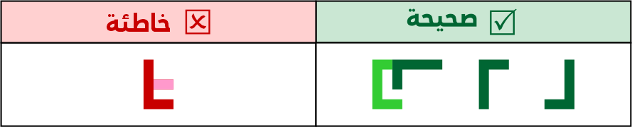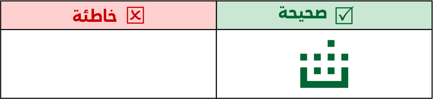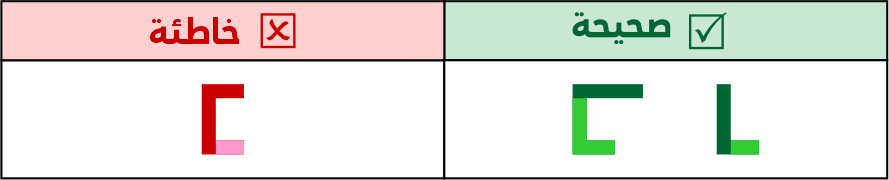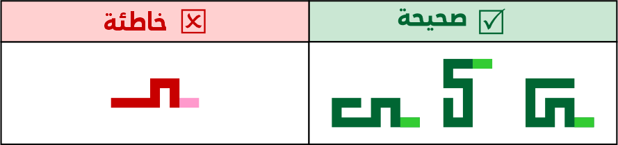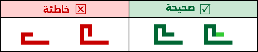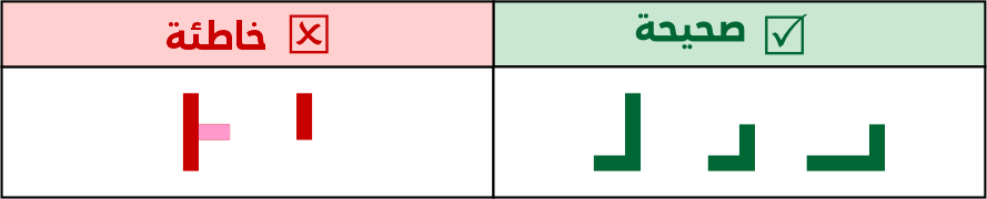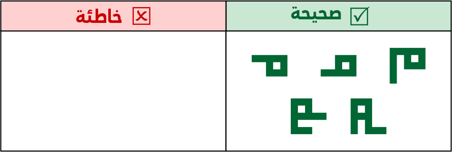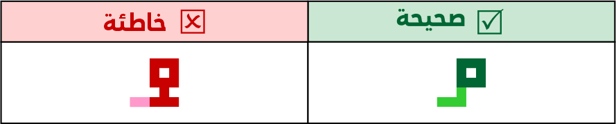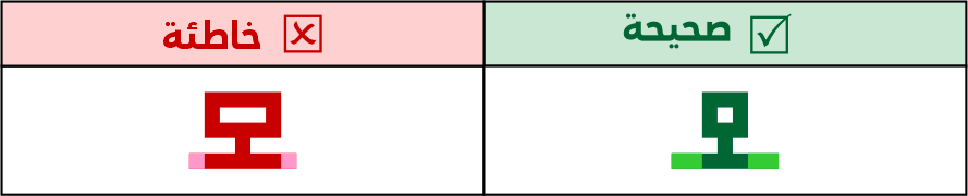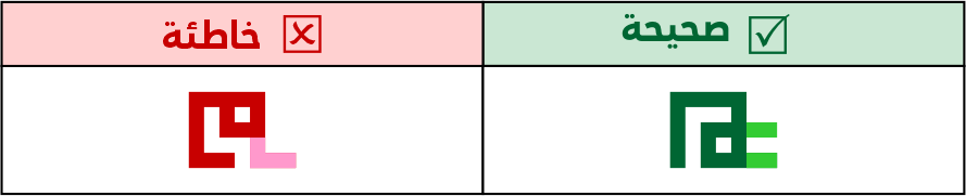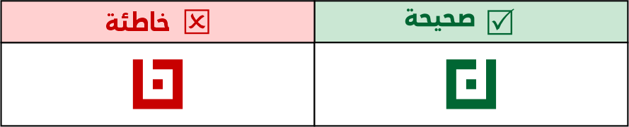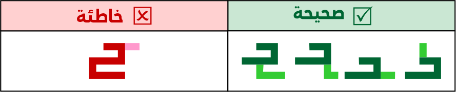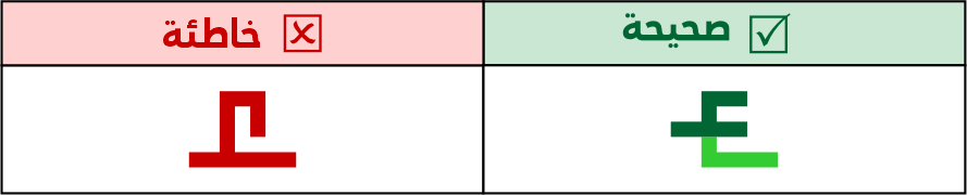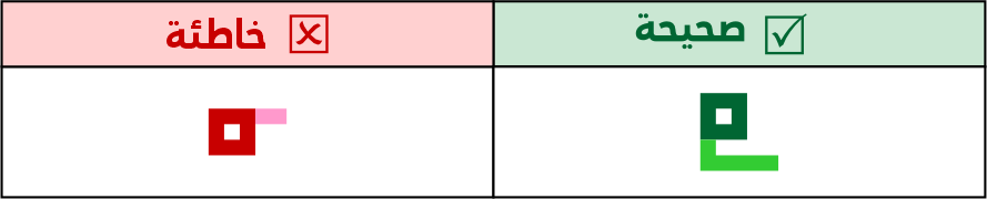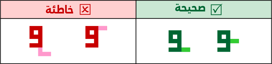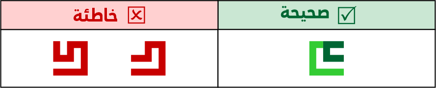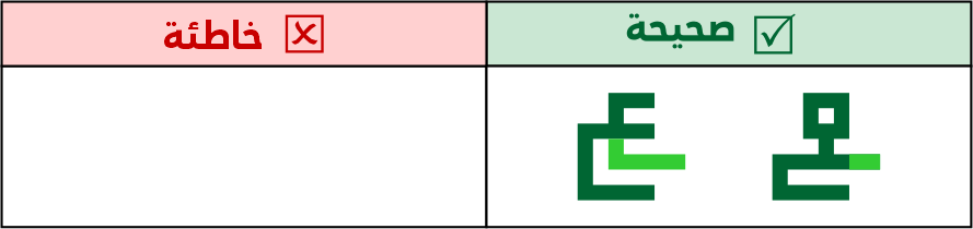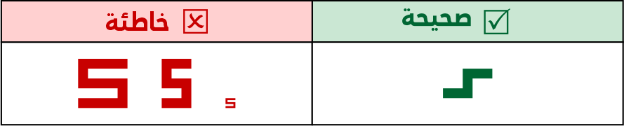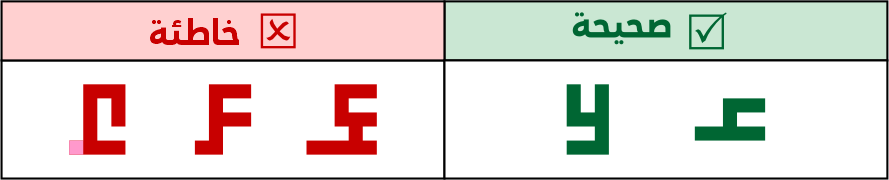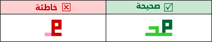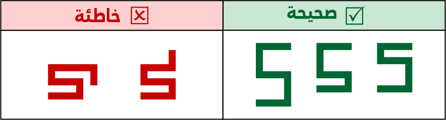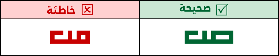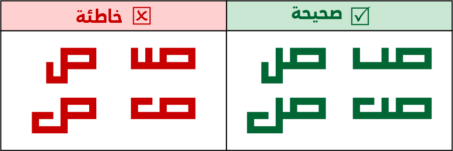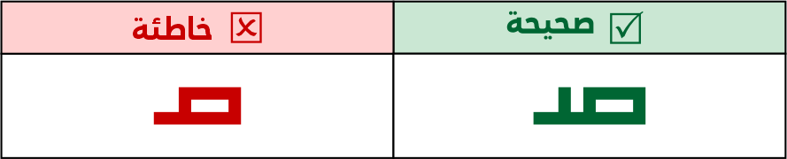 عين الصاد تكون مستطيلة الشكل 5 مربعات فأعلى، ولا يجوز الاقتصار فيها على 3 مربعات لئلا تشتبه مع حروف أخرى مثل الميم.