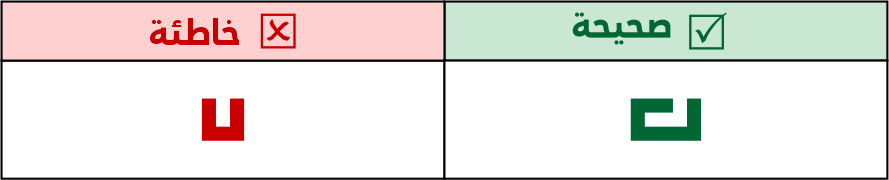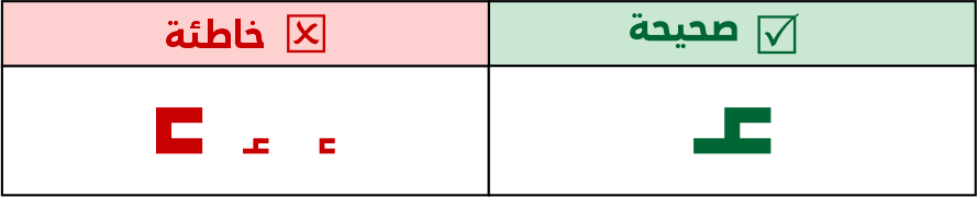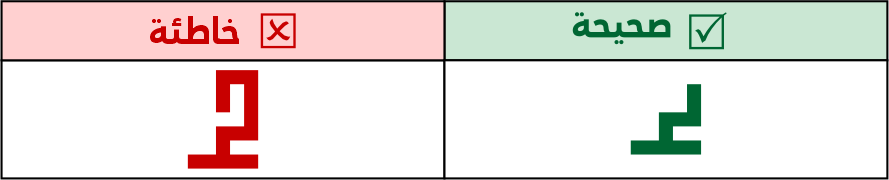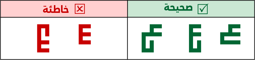 عين الهاء مربعة الشكل في كل حالاتها البادئة والوسطية والطرفية والمفردة، لا يجوز استخدامها بشكل مستطيل رأسيًا أو أفقيًا. ولا يجوز وصل نقاط التاء المربوة الطرفية أو المفردة بعينها.