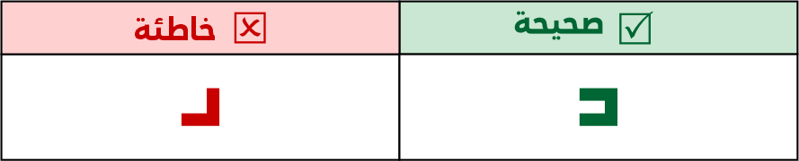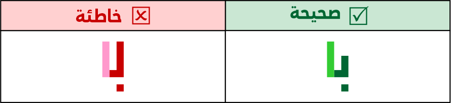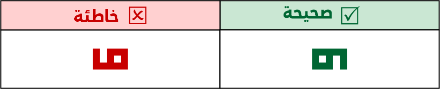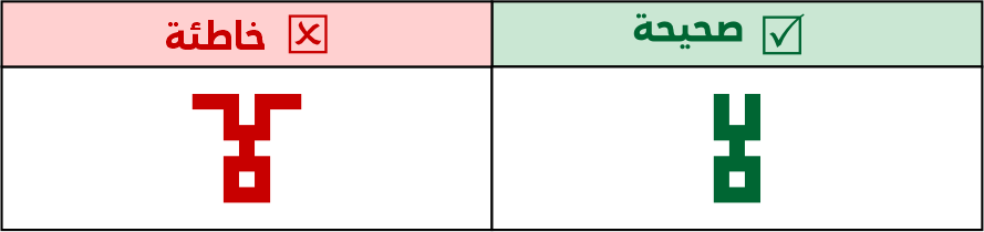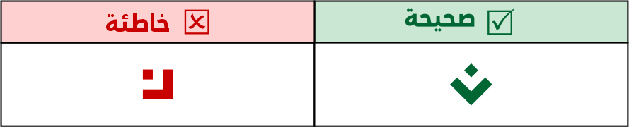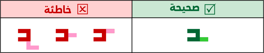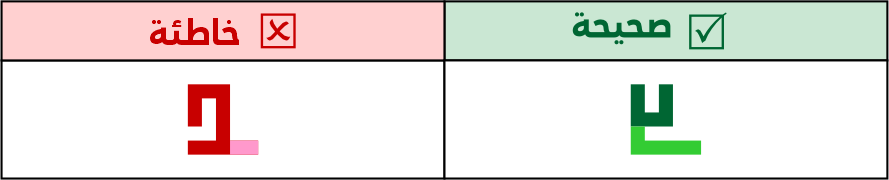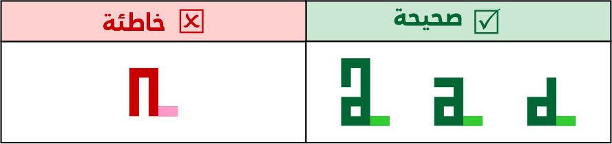 الصواعد في التربيعي لا يتم كسرهـا أو تزويتها ومنها حرف الألف، سواء كانت مفردة أو متصلة/ طرفية.
