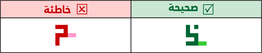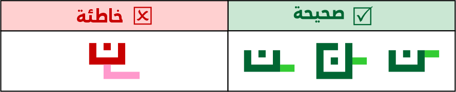 نقطة النون البادئة أو الوسطية تكون فوق سنتها أو بعد سنتها، ولا يجوز جعل النقطة قبل السنة، لئلا تشتبه الحروف التي قبلها.