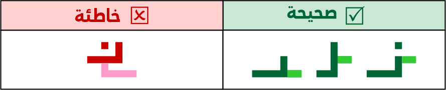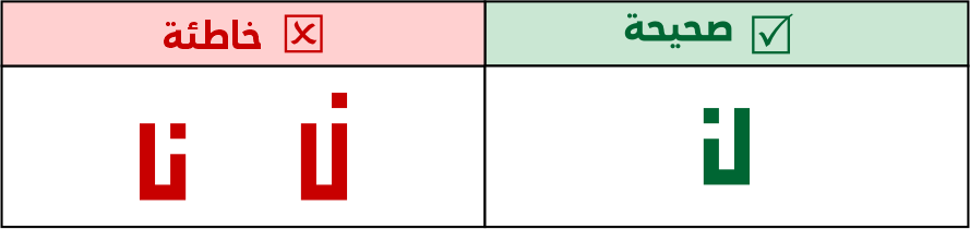 يجوز عمل النون بشكل محيطي بارتفاع 5 مربعات على أن تكون عقفتها إلى اليسار، ولا يجوز عمل العقفة ناحية اليمين لئلا تشتبه مع حروفًا أخرى مثل (نا).