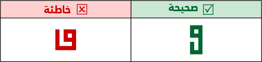 يكون للفاء وأختها رقبة لا يصح عملها بدونها لئلا تشتبه مع حرف الميم، وهذا في كل حالاتها البادئة والوسطية والطرفية والمفردة. مع جواز هبوط الرقبة.