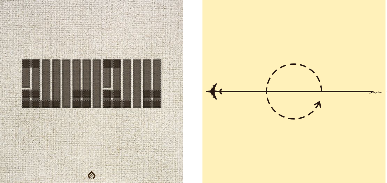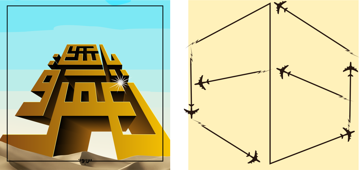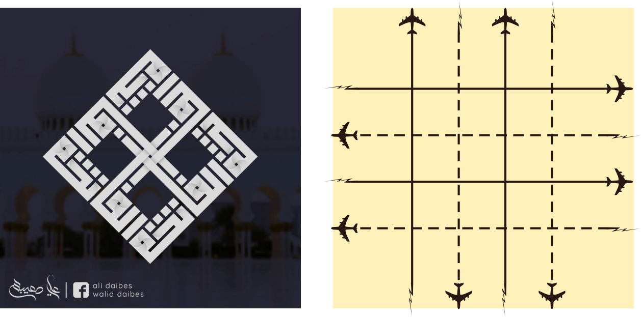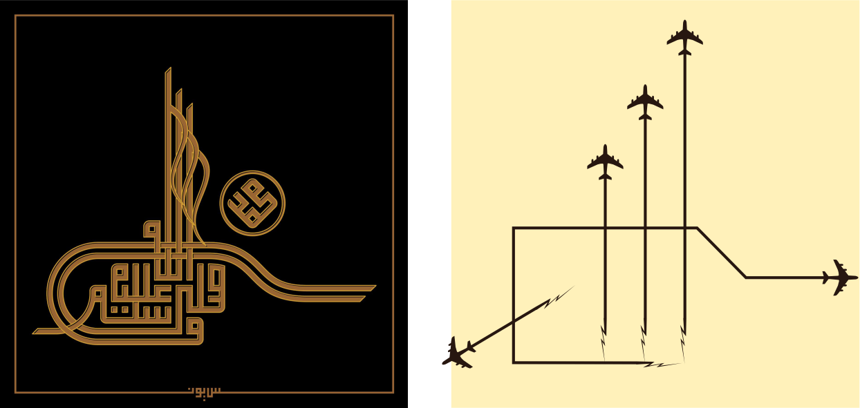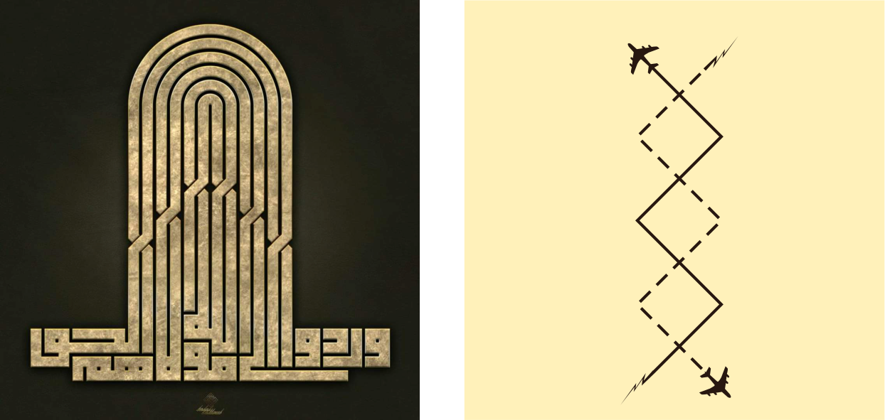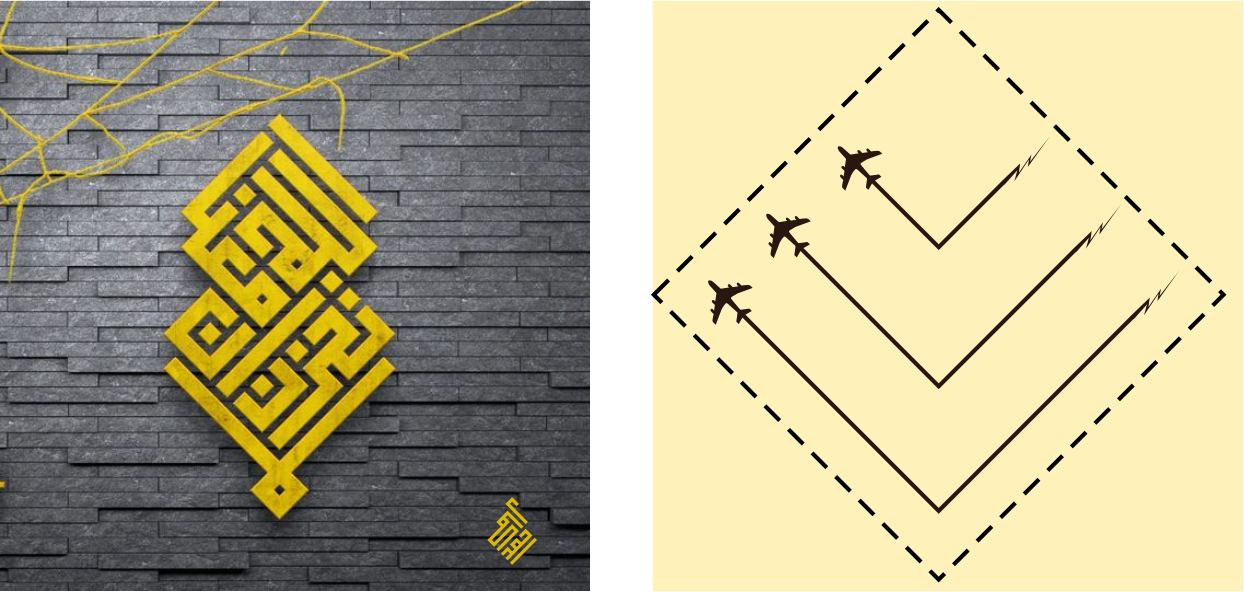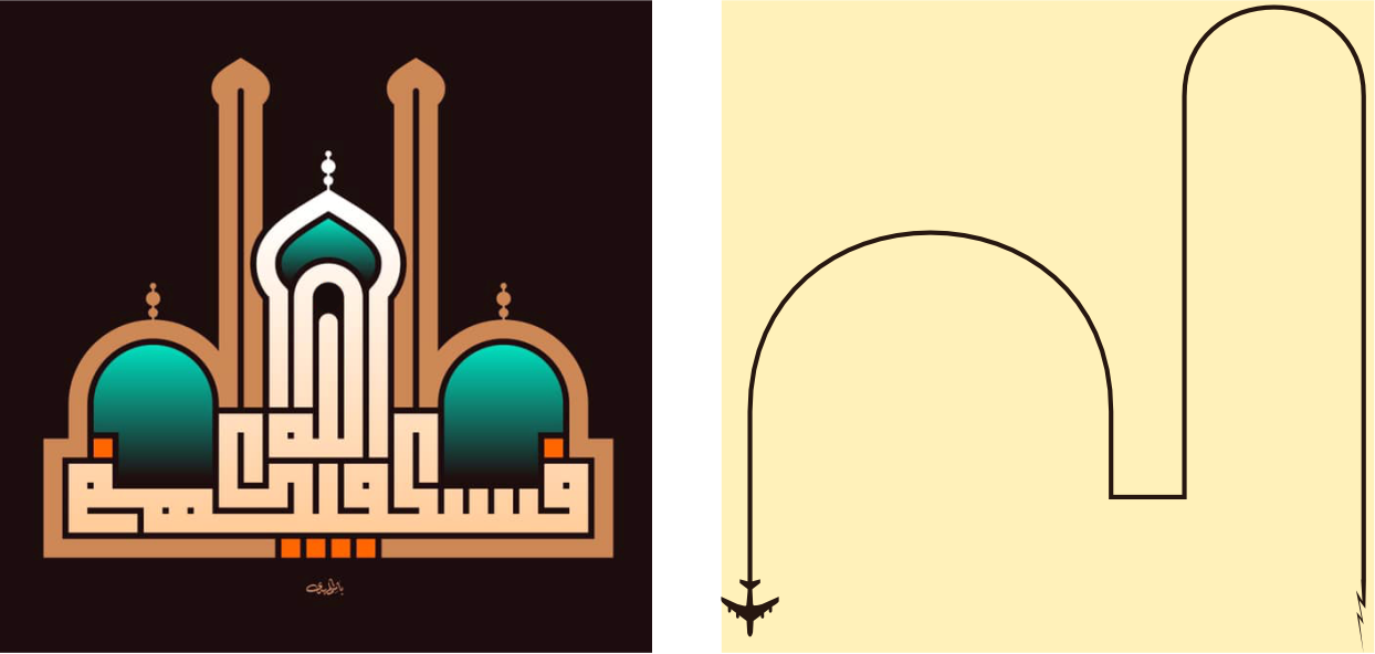 لإنجاز هذا المسار يتم عمل الحروف والكلمات في التكوين بشكل مائل بزاوية 45 درجة، مع تعديل اتجاه الحروف تبعًا لذلك.