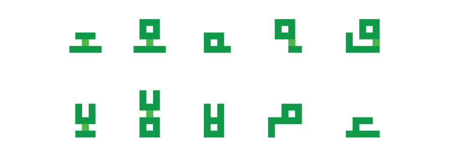 يتواجد في بعض الحروف دون غيرها، مثل رأس الحاء وأخواتها، وغير مشهورة كما في حالات عيون (ع، غ) الوسطية، واللام ألف، وأحد أشكال الياء المشبوكة، وهو جائز الاستخدام.
